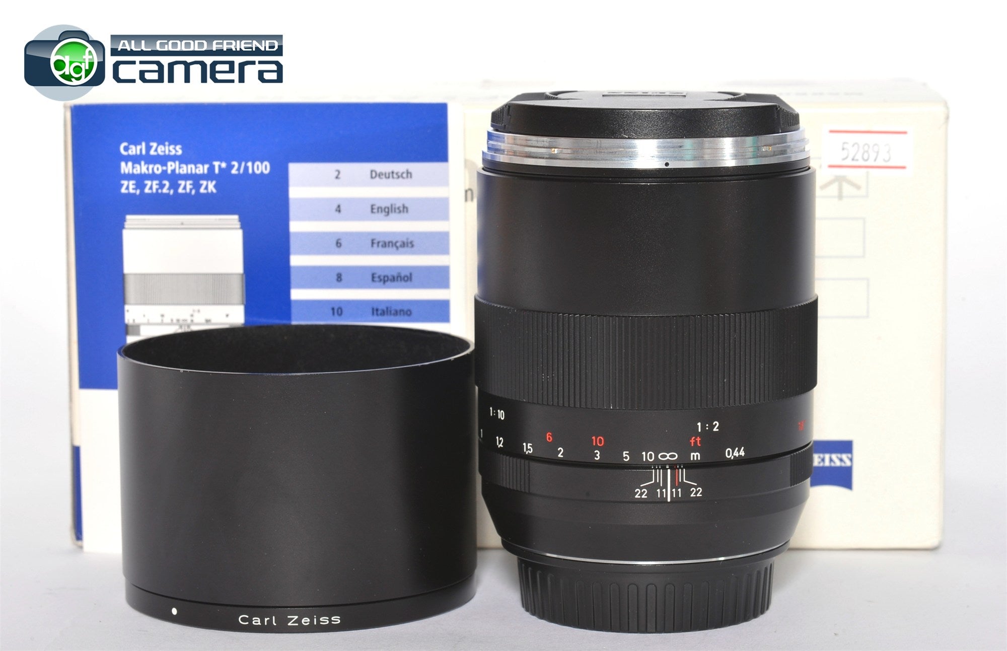 Includes: Box, lens, front/rear caps, lens hood, instructions manual, test certificate.