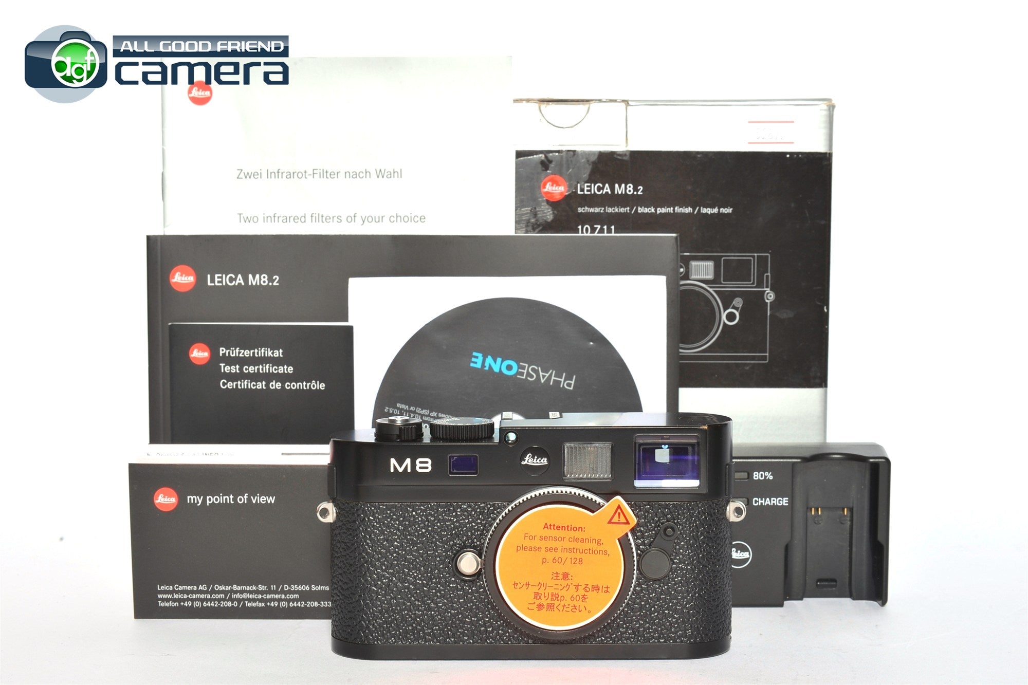 Includes: Box, presentation box, camera, body cap, neck strap, battery, battery charger with power cords, instructions manual, test certificate, software CD.