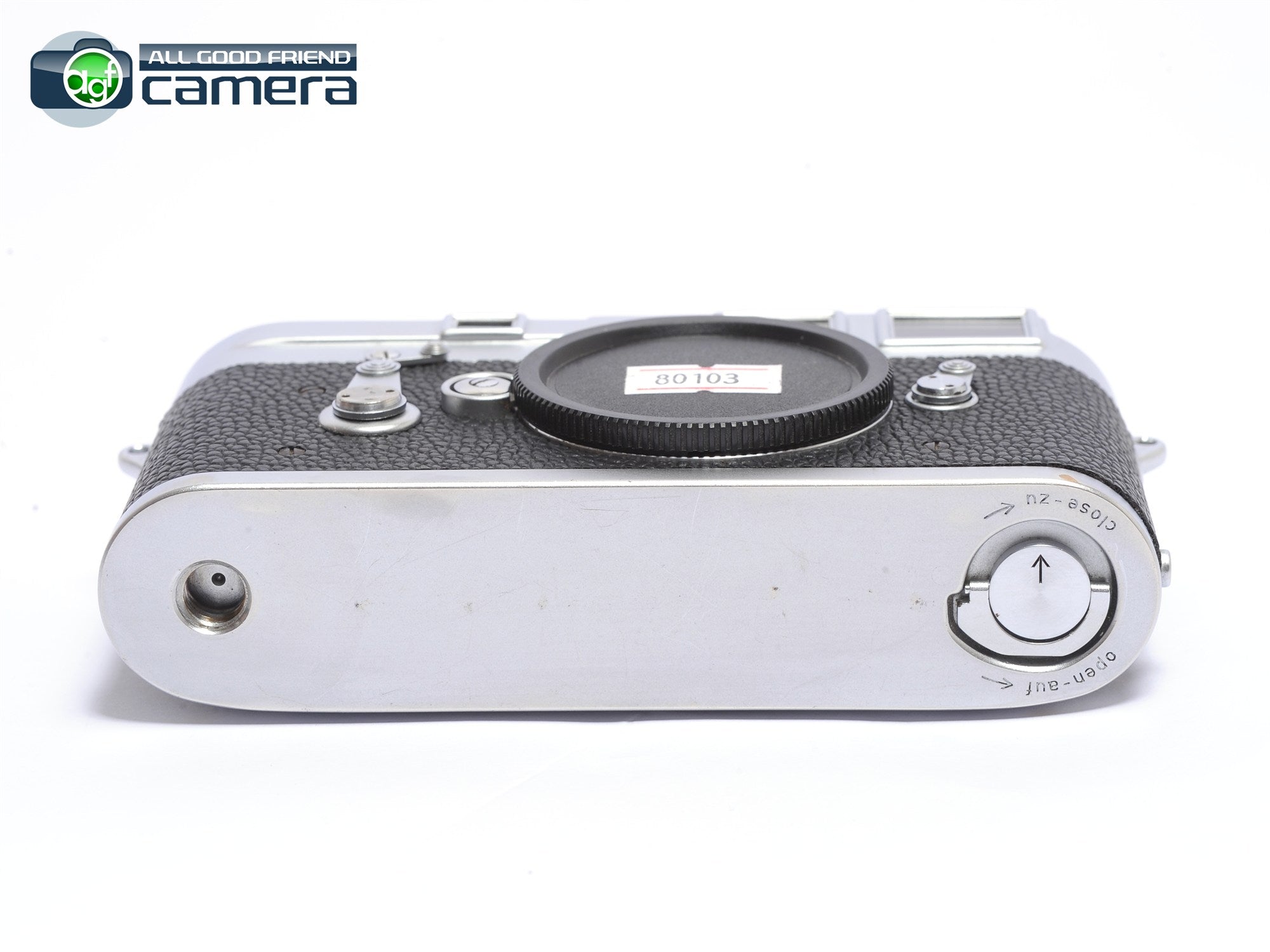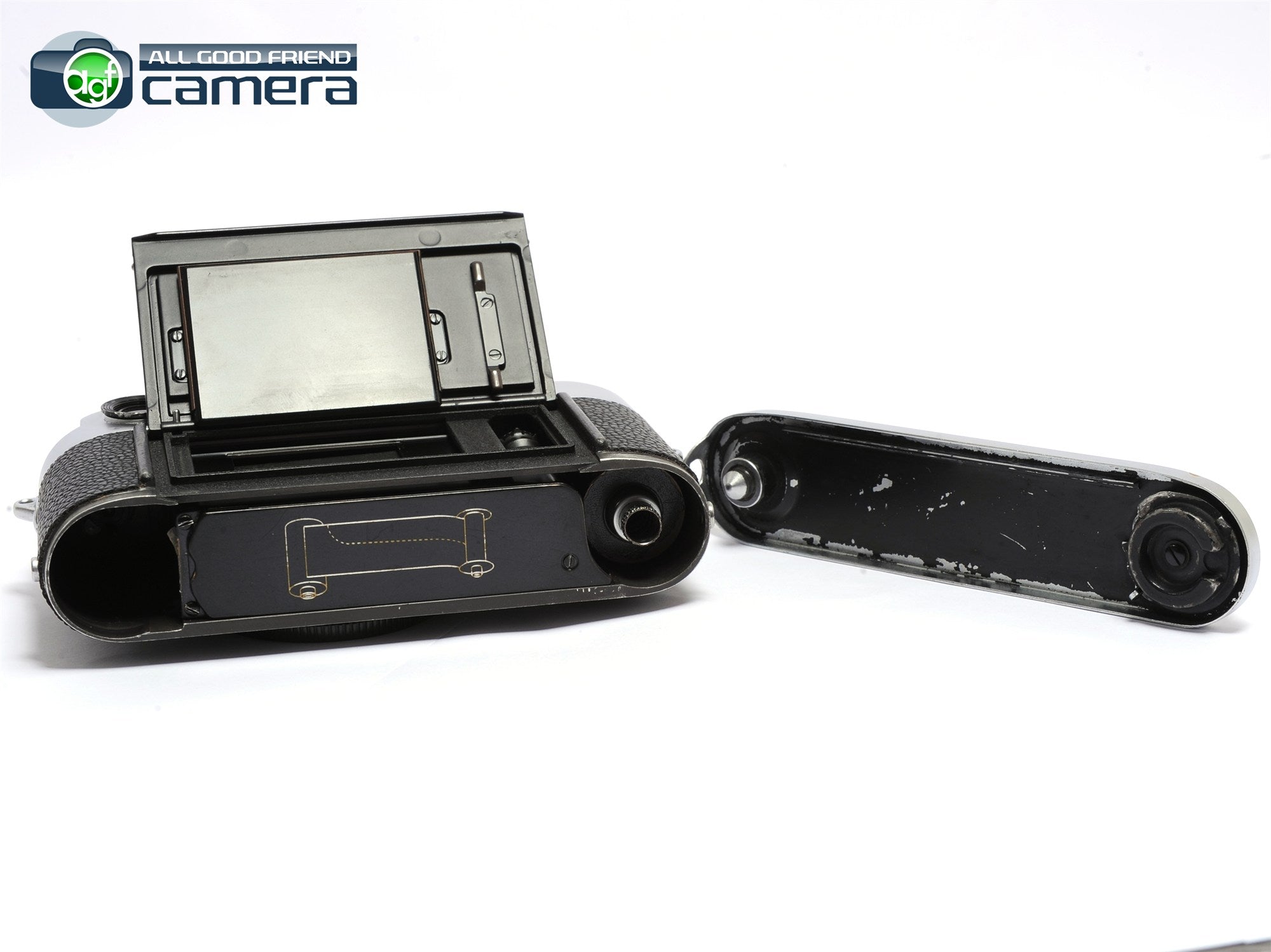 Cosmetic: GOOD --> there're some paint wear around the edge of the film back and viewfinder eyepiece area. The bottom plate will have some marks on it.